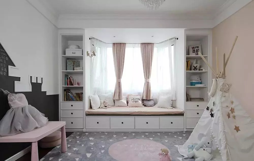 傳統陽臺的模式:晾曬衣物、堆放雜物,在陽臺設計榻榻米,白天不僅可以做起居室,還是儲物的絕佳場所;睡覺時可作床,過來客人時這是客房,孩子玩耍時,它又成了兒童樂園。