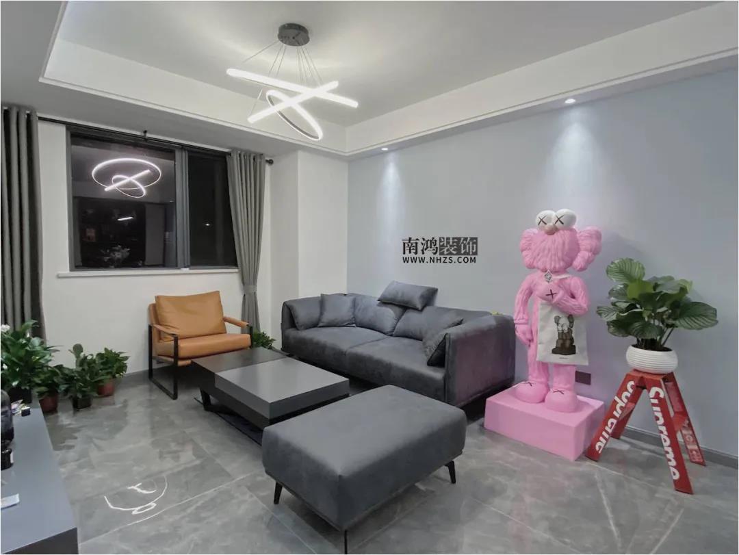 本案為90方現代風格三室兩廳設計,選用的是公司1199套餐,主色調偏灰,線條分明,簡潔又耐看。