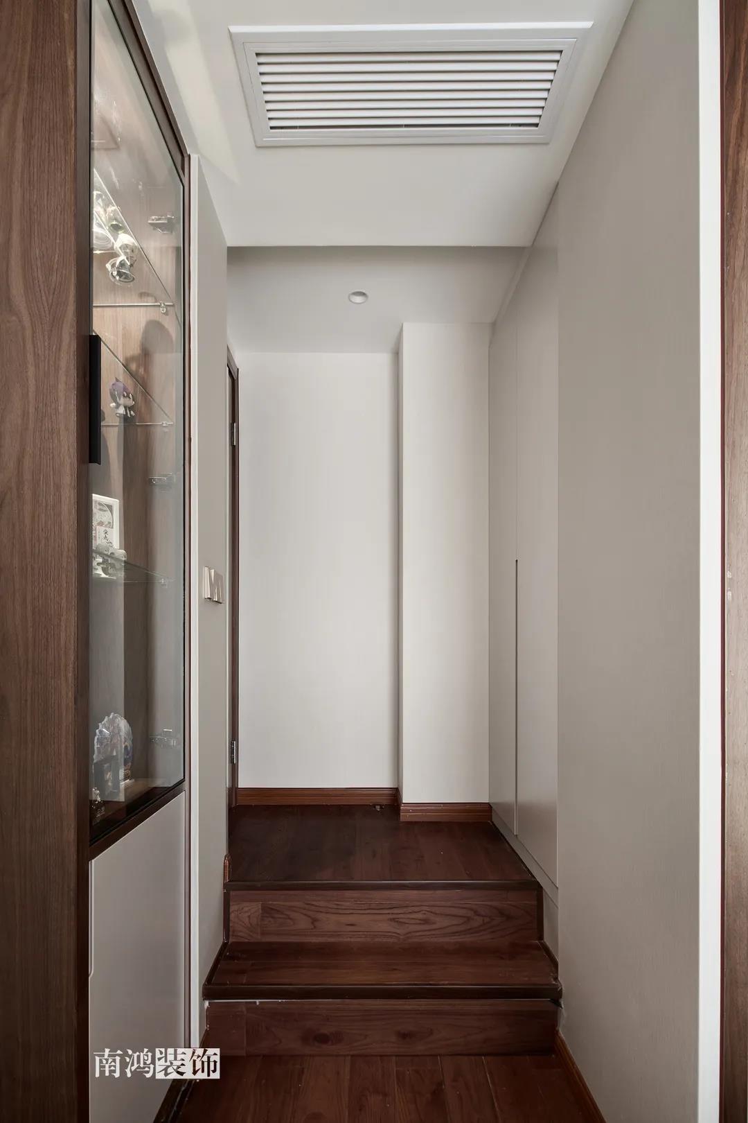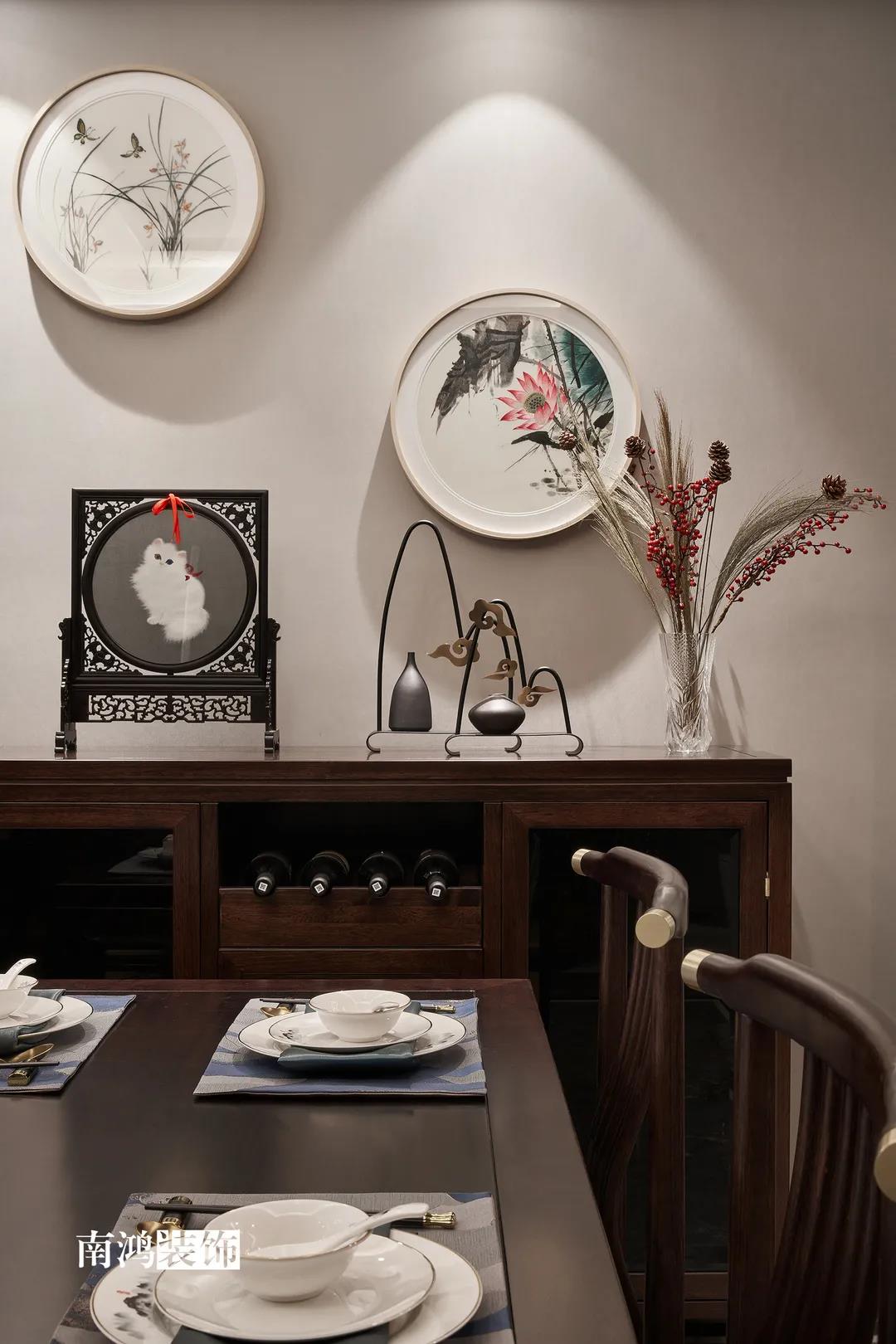 新中式風格是對傳統文化的再設計 亦是對中式風韻的現代化演繹 它將簡約內斂、精致古典的特性融入生活 有條不紊地傳遞著空間力量 01. 玄關 ENTRANCE 入戶玄關開啟了這個家的序章,彰顯著十足的儀式感。墻上開圓洞,能借此窺見到廚房的景象,空氣中也仿佛彌漫出淡淡的菜香,是只屬于家的味道呀。 02. 廚房 KITCHEN 廚房做半開放式,與玄關相連。布局是動線更為簡短的U字型,按“入戶-冰箱-水槽-灶臺”的順序就能高效開始下廚時光。 03. 客廳 LIVING ROOM 溫馨典雅的客廳空間,色彩調配和諧,不寡淡,不張揚,布藝與原木釋放著柔和氣息,一切皆從生活的本質出發,在自然之美中找尋到心靈的歸宿。 個性定制的藝術硬包化作沙發背景墻,盛開的花朵寓意著生活的美好。兩側做鏡面裝飾,既是對吊頂細節的呼應,又在無形中放大了空間。 客廳望向餐廳的角度,從這里可以清楚看到客餐廳與廚房、玄關之間的移門位置,移門一拉,便是兩塊互不打擾的獨立區域。 04. 餐廳 DINING ROOM 經過精心“妝容打扮”的餐廳就像從畫卷中走出的江南美人,優雅動人,秀麗端莊。 瓷盤花藝、畫扇茶器等中式元素,共同構筑起這個清雋和雅的室內場景,使其更為飽滿的同時視覺上也更有層次。 05. 臥室 BEDROOM 主臥納入陽臺以增強整體的空間感與明亮通透度,床尾的斗柜方便小件收納,活潑的藍粉與淡雅的綠形成對照,彰顯獨特個性。 作為休憩的地方,設計師在空間內摒棄多余的裝飾,讓每一件物品都顯得不可或缺。 女兒房結合了鮮亮的明黃與溫柔的香檳色,充滿著活力與希望。 長輩房用色沉穩,并選擇了素雅墻布來營造溫和觀感。 06. 書房 STUDY ROOM 書房,乳白色的漆面結合成品中式家具,主人的所有閑情雅致,都能在這方天地里,怡然自得。 07. 衛生間 BATHROOM 位于三樓的衛生間干區,相鄰樓梯,墻上順勢開洞以增強流動性,也不會顯得壓抑。墻地材質使用一致,保證空間的整體性。 平面戶型圖 -- ·項目信息· 項目名稱:上河宸章 建筑類型:疊排底躍 設計風格:新中式 項目地點:中國·杭州 項目面積:200㎡ 項目服務:設計·施工·硬裝·軟裝 全案設計 設計單位:浙江南鴻裝飾 施工單位:浙江南鴻裝飾