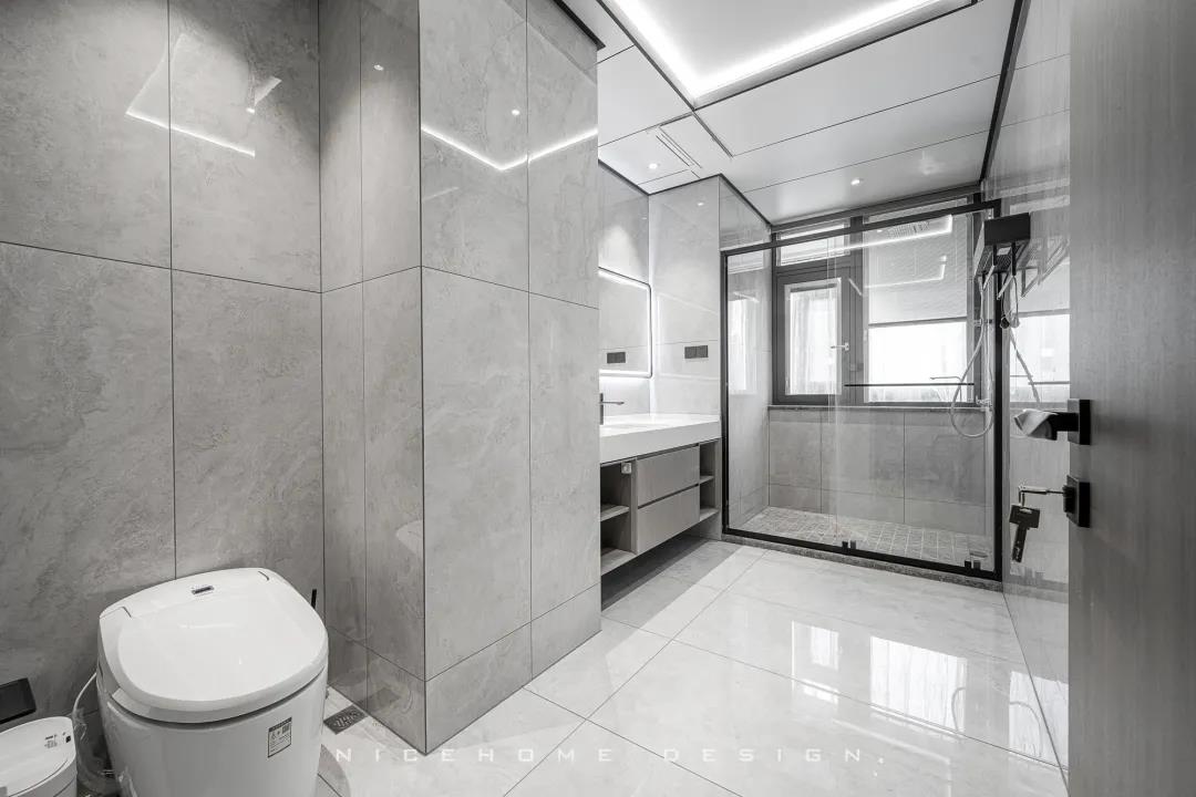 關于家的氛圍感營造,色彩和燈光是至關重要的兩點。 現代風格的色彩設計受現代繪畫流派思潮影響很大,通過強調原色之間的對比協調來追求一種具有普遍意義的永恒的藝術主題,裝飾畫、飾品的選擇對于整個色彩效果則起到錦上添花的作用。 除了色彩上的和諧配比,設計師在本案燈光設計上也下了許多功夫,重點突出:一是燈光功能布局的細化,照明燈光、背景燈光和藝術燈光三種效果有機組合;二是燈光控制的智能化、模式化,也即控制方式由分開的開關變為集中遙控,通過設定視聽、會客、餐飲、學習、睡眠等組合燈光模式,來達到理想效果。 客廳 LIVING ROOM 客廳包進陽臺,最大限度引入外部光線,呈現明亮通透的視覺效果。對于主人而言,室內的隱私也相當重要,因此在陽臺口安上了窗簾。 空間布局開敞,沙發后留出距離讓公區域動線更加流暢。硬裝與家具的線條都十分明晰,簡約的架構創造出清爽有序的居家環境。 質樸的木飾面相比其他材質而言要更加低調,顯露出不張揚的高級感。與之呼應的暖咖色皮藝沙發搭配絨布拼色地毯,和諧的色調、統一的氣質,多種材質交織,賦予空間自然的呼吸與舒緩的心跳。 陽臺一側的立面空間不做絲毫浪費,收納柜中嵌入了洗手臺和直飲水機,視覺上渾然一體。 餐廳 DINING ROOM “是誰來自山川湖海,卻囿于晝夜,廚房與愛。”時尚利落的現代感在餐廳空間鋪展開來,散落于細節間的精致能輕松勾起用餐者的食欲。 餐廳與廚房以長長的玻璃移門相隔,空間視野相當開闊,移門一開,餐廚互動便沒了阻礙。 大理石紋的餐桌組合不銹鋼桌腳,圓角設計勾勒著藝術感知。背景做整墻柜體,除了收納餐具、酒品之外,也方便展示一些個性單品。 廚房 KITCHEN L型布局廚房,有足夠的操作臺讓主人大展廚藝,白色系能將空間寬敞明亮的感覺放大到極致。 過道 CORRIDOR 過道,統一的原木色讓視覺保持極致簡潔,盡頭處的燈光打下來,讓墻上的藝術畫作成功凝固住了剎那間的美好。 臥室 BEDROOM 主臥的陽臺也包進室內,頓時有種面積擴大了兩倍的感覺,更大的面積也意味著更多的活動空間與收納空間。 房間過大容易顯得空蕩蕩的,因此我們在床尾設置了床尾凳和地毯,用以豐富視覺與功能性,頂部依然是簡練的無主燈設計。 睡眠區域簡潔沉穩,高級灰色調與深木色有助于營造安靜而放松的休憩氛圍。 休閑陽臺位置擺放經典的Togo沙發,松松軟軟的坐感簡直不要太舒服! 書房 STUDY 一間高品質的書房背后,必定有著一顆熱愛學習用心工作的靈魂。厚實的桌體組合纖細的桌腳,書桌給人的設計感很強,搭配吊燈和地毯,進一步勾勒出空間的格調與優雅。 休閑室 LEISURE ROOM 家里的休閑室,延續了公區域大面積的灰色質感元素,地臺+懶人沙發+電視,在這里可以自由自在地做自己想做的任何事! 衛生間 BATHROOM 主衛面積富余,在淋浴間和浴缸之外還留出了大量走動空間,再加上雙臺盆設計,力求將舒適度拉到最大。 公衛與次衛,空間分別用灰色與白色的瓷磚統一鋪就,干凈整潔,白凈的基底疊加上黑色線條,看上去會更有品質且視覺不再單一。